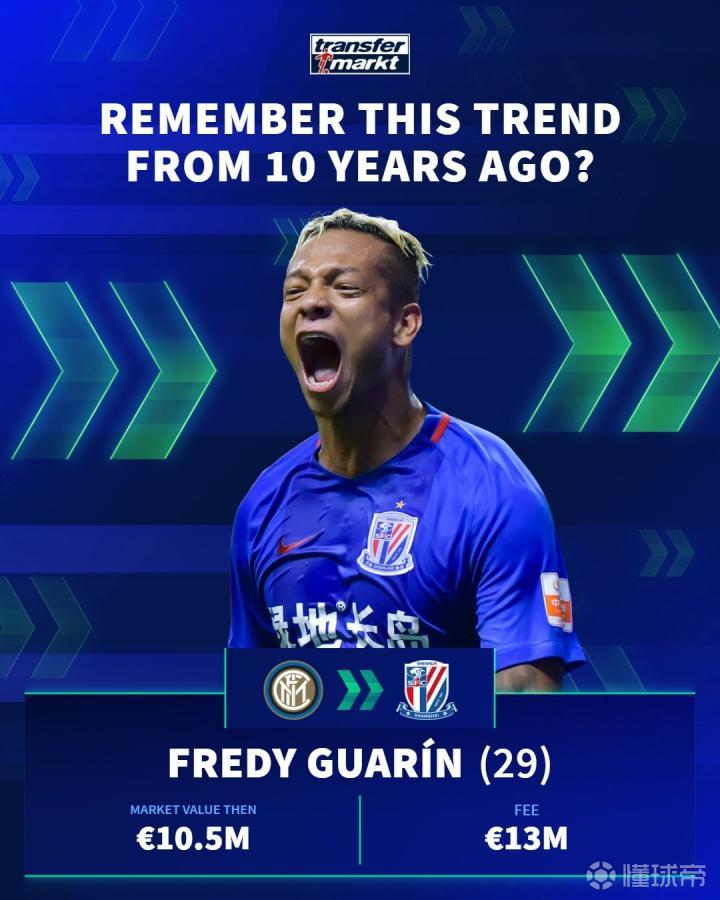 德国转会市场在社交媒体上分享了中超10年前的引援,并配文道:“十年前,一股席卷欧洲足坛的潮流!🌍”