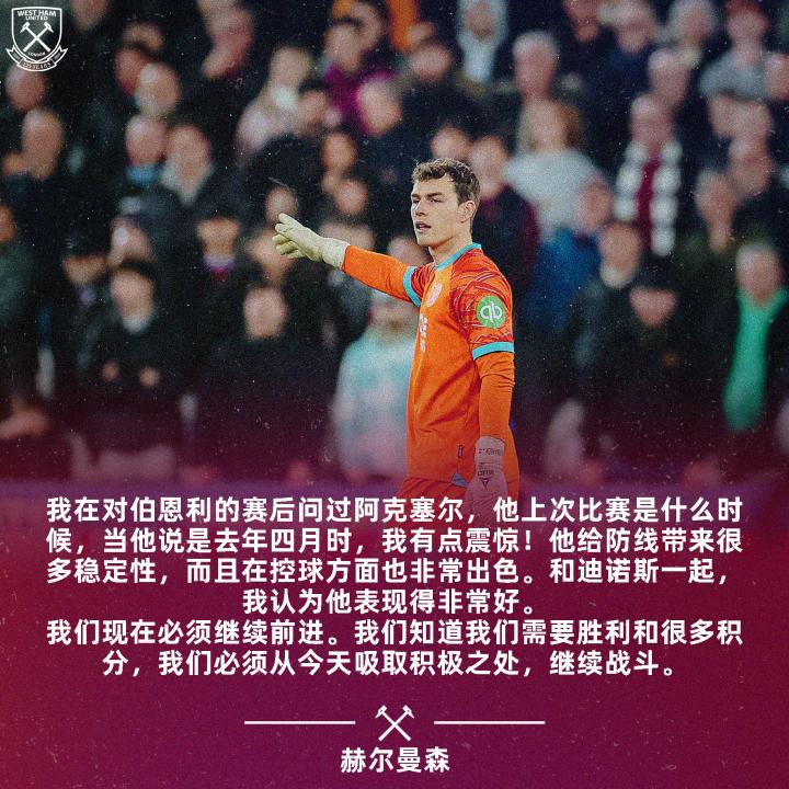 新的后防搭档收获又一场零封✅🎙️赫尔曼森:“阿克...西汉姆联足球俱乐部 @懂球帝02-23 18:04新的后防搭档收获又一场零封✅ 🎙️赫尔曼森:“阿克塞尔给防线带来了稳定性且控球方面出色,和迪诺斯搭档,他表现非常好。”展开更多