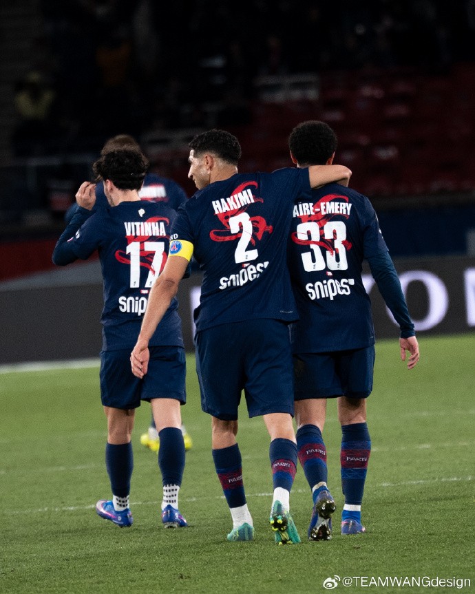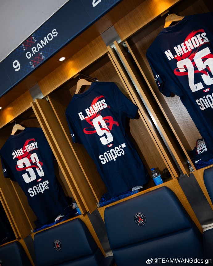 王嘉尔旗下的设计品牌“TEAMWANGdesign”表示:我们携手巴黎圣日耳曼推出新春联名限定球衣,将中国书法“馬”字与球员标识交织融合,以动态笔触演绎赛场锋芒,让征战印记跃然衣上。当红蓝信仰,遇见新年红运