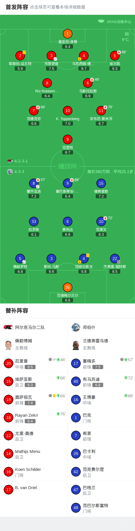 下半场补时第1分钟,阿尔克马尔二队球员市原吏音助攻厄里普打入一球。