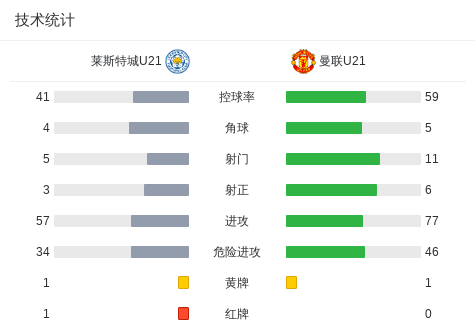 第75分钟,莱斯特城U21球队Reiss Khela吃到第二张黄牌。