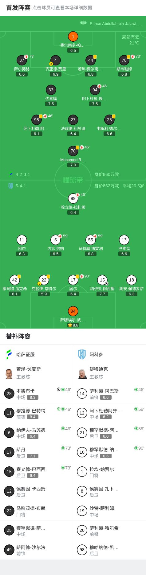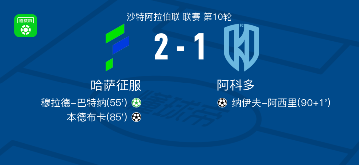 北京时间2月24日沙特阿拉伯联 联赛 第10轮,哈萨征服主场对阵阿科多。哈萨征服穆拉德-巴特纳破门,本德布卡破门。阿科多纳伊夫-阿西里破门。最终比分哈萨征服 2-1 阿科多。
