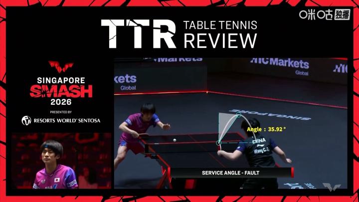 第一局,副裁判判王楚钦发球回抛,王楚钦发起鹰眼挑战。鹰眼显示王楚钦发球回抛角度为35.92°,被判回抛违例。