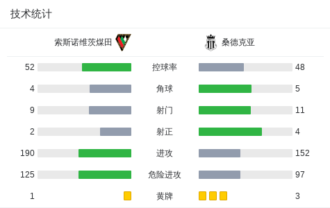 北京时间2月25日波兰乙级联赛 联赛 第17轮,索斯诺维茨煤田主场对阵桑德克亚。索斯诺维茨煤田Bartosz Snopczynski破门。桑德克亚菲利普-皮什切克梅开二度。最终比分索斯诺维茨煤田 1-2 桑德克亚。