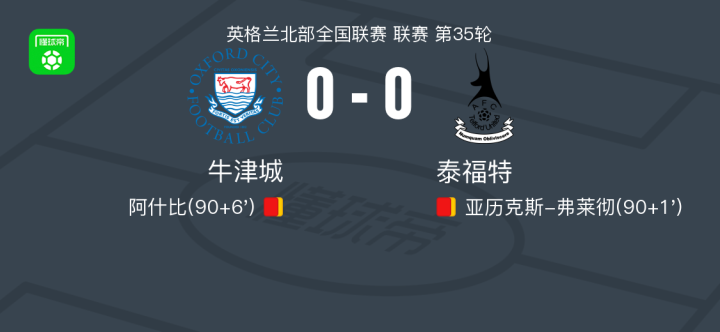 牛津城0-0泰福特,双方互有攻守战报bot @懂球帝02-25 05:46北京时间2月25日英格兰北部全国联赛 联赛 第35轮,牛津城主场对阵泰福特。最终比分牛津城 0-0 泰福特。点击查看本场比赛详细数据>>精彩瞬间下半场补时第1分钟,泰福特球队亚历克斯-弗莱彻吃到第二张黄牌。下半场补时第6分钟,牛津城球队阿什比吃到第二张黄牌。 技术统计 展开更多