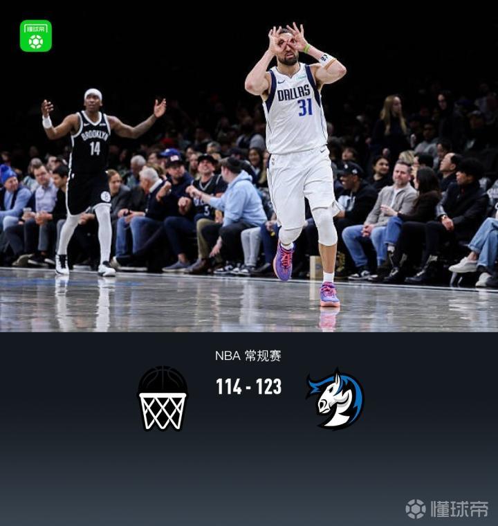 独行侠123-114小胜篮网,巴格利22+5,小波特空砍26分