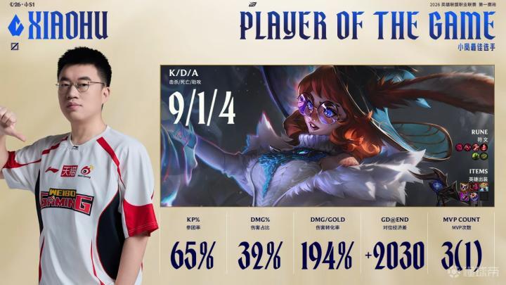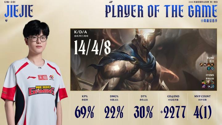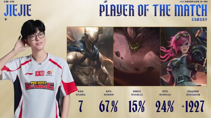 本场比赛的MVP给到WBG打野Jiejie。
