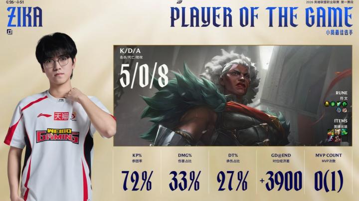 第三局MVP给到对位打出Gap的WBG上单Zika。