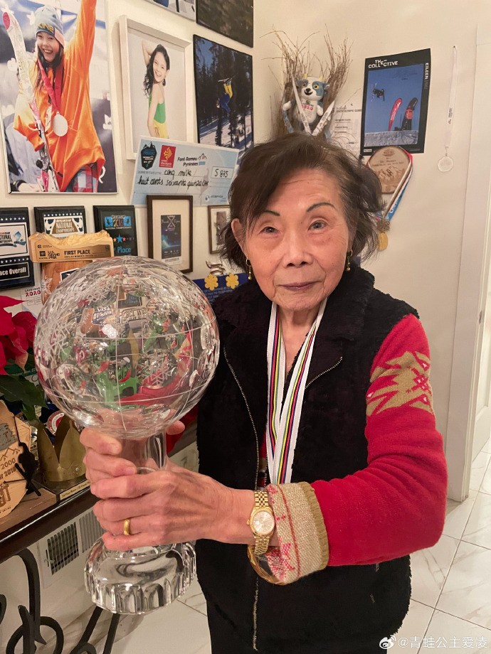 2月25日,奥运冠军谷爱凌更新社媒,晒出与外婆曾经的合影,并配文:为了她❤️🏆