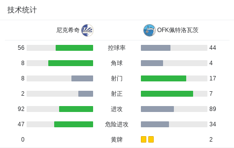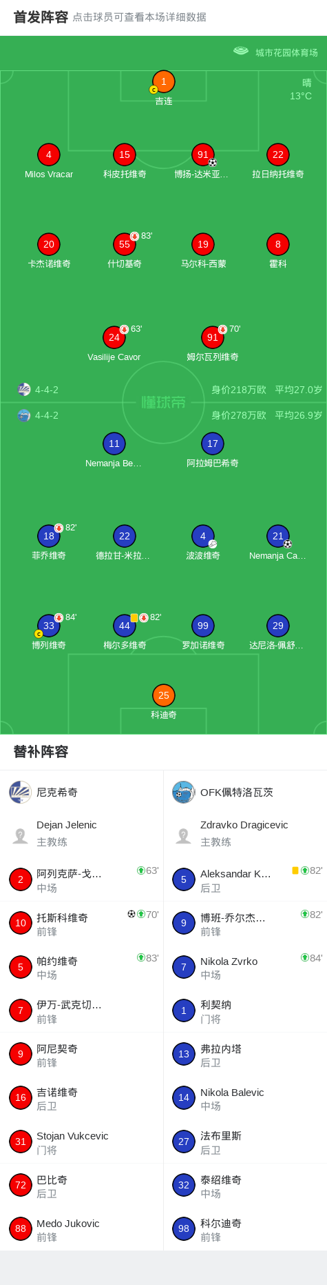 尼克希奇2-1逆转OFK佩特洛瓦茨,托斯科维奇、博扬-达米亚诺维奇破门