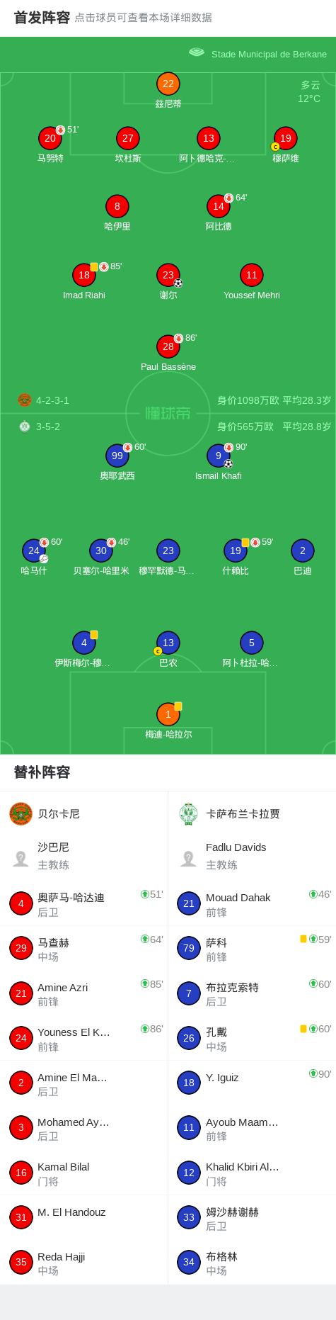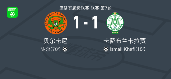 贝尔卡尼1-1卡萨布兰卡拉贾,Ismail Khafi破僵,谢尔扳平