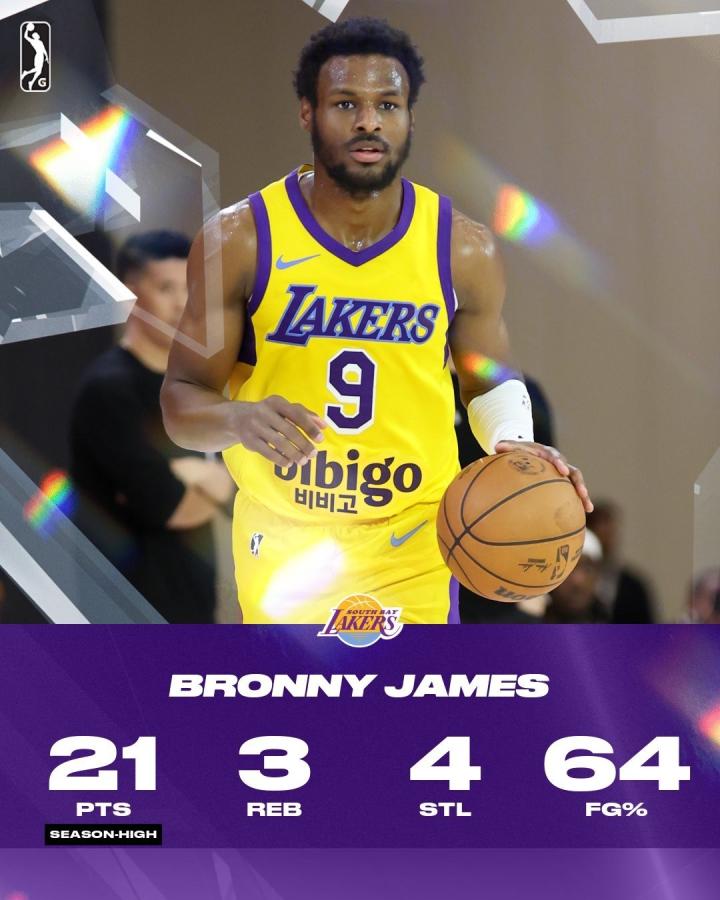北京时间2月26日凌晨,NBA下属联盟(G联赛),南湾湖人客场113-99战胜山谷太阳,布朗尼得到赛季新高的21分。