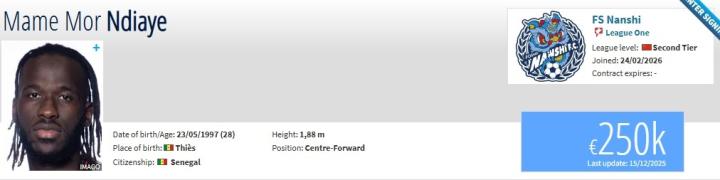 德转:原挪超前锋恩迪亚耶自由身加盟佛山南狮,身价25万欧盖坦9 @懂球帝02-26 11:22北京时间2月26日,德转更新,原挪超前锋马梅-恩迪亚耶自由身加盟佛山南狮,身价25万欧。马梅-恩迪亚耶现年28岁,来自塞内加尔,司职前锋。此前球员效力于挪超俱乐部KFUM奥斯陆,期间共为一线队在各项赛事出场49次,打进7球助攻4次。马梅-恩迪亚耶在今年1月与KFUM奥斯陆合同到期,成为自由球员。现在他在德转上的身价为25万欧元。展开更多