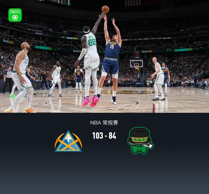 掘金103-84凯尔特人,约基奇30+12,布朗23+11,穆雷病退