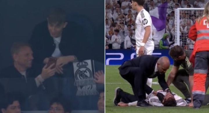 事发起因是当劳尔-阿森西奥遭遇重伤、全场观众屏息关注时,镜头转向了因伤缺席比赛而坐在包厢的赫伊森。画面中,可见赫伊森正与父亲嬉笑,而当时父亲正用手机给他看某张图片。