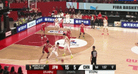 日本男篮连续前场板二次进攻得分!中国男篮15-27日本