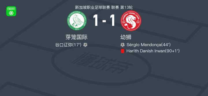 北京时间2月26日新加坡职业足球联赛 联赛 第13轮,芽笼国际主场对阵幼狮。芽笼国际谷口辽弥破门。幼狮Sérgio Mendonça破门。最终比分芽笼国际 1-1 幼狮。
