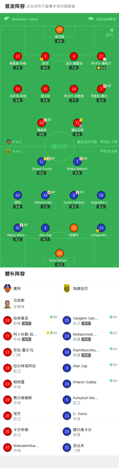 果阿1-0海德拉巴,德拉日奇打进全场唯一进球