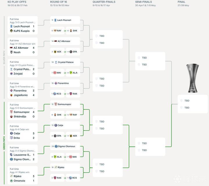 欧协联16强出炉,1/8决赛抽签将于2月27日21时进行