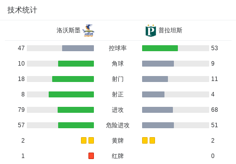 第74分钟,洛沃斯墨球队阿龙-苏尼加吃到红牌。