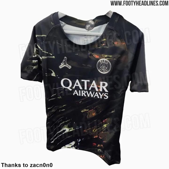 据著名足球装备网站Footy Headlines报道,大巴黎本赛季第五球衣实物图曝光,该球衣主体为黑色,带有多彩反光效果。