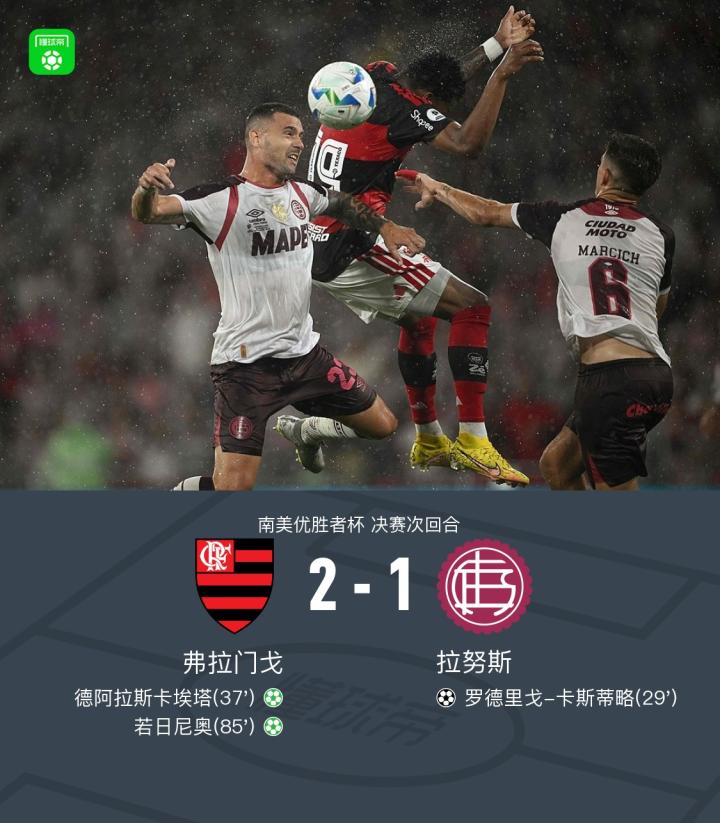 90分钟战报:弗拉门戈2-1拉努斯两回合双方战平,若日尼奥点射
