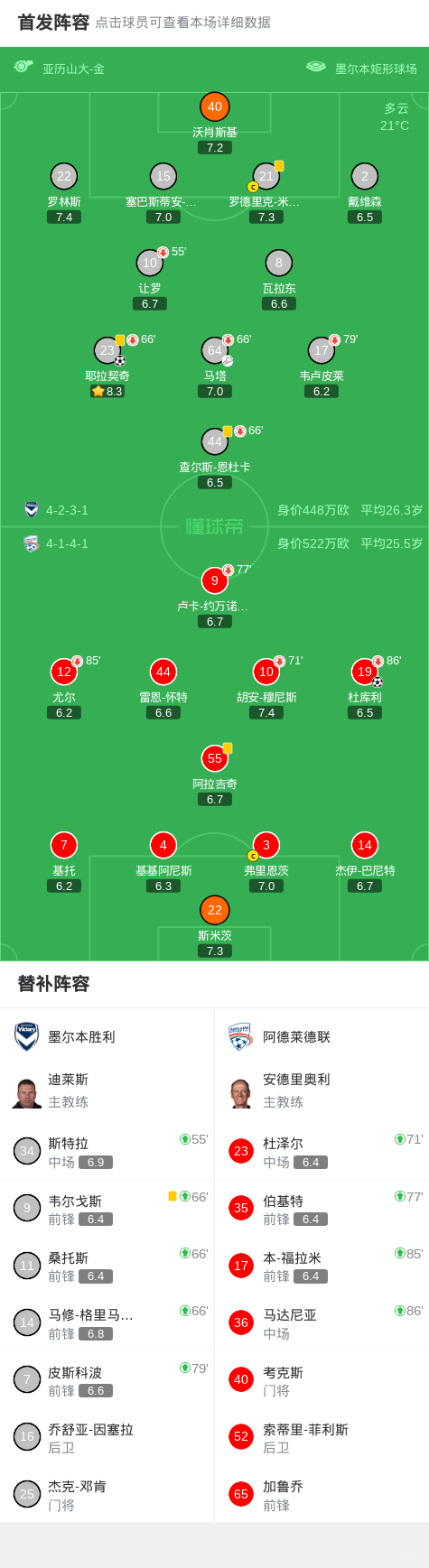 第26分钟,马塔传球,耶拉契奇突入禁区扣过防守破门,墨尔本胜利1-0