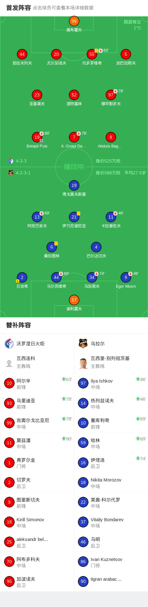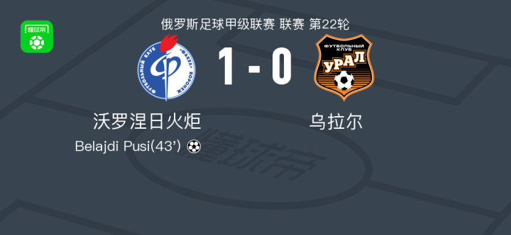 沃罗涅日火炬1-0乌拉尔,Belajdi Pusi制胜战报bot @懂球帝02-28 00:02北京时间2月27日俄罗斯足球甲级联赛 联赛 第22轮,沃罗涅日火炬主场对阵乌拉尔。沃罗涅日火炬Belajdi Pusi破门。最终比分沃罗涅日火炬 1-0 乌拉尔。点击查看本场比赛详细数据>>点击查看俄甲完整积分榜>>精彩瞬间第43分钟,沃罗涅日火炬球员Belajdi Pusi打入一球。 球队阵容 技术统计 展开更多