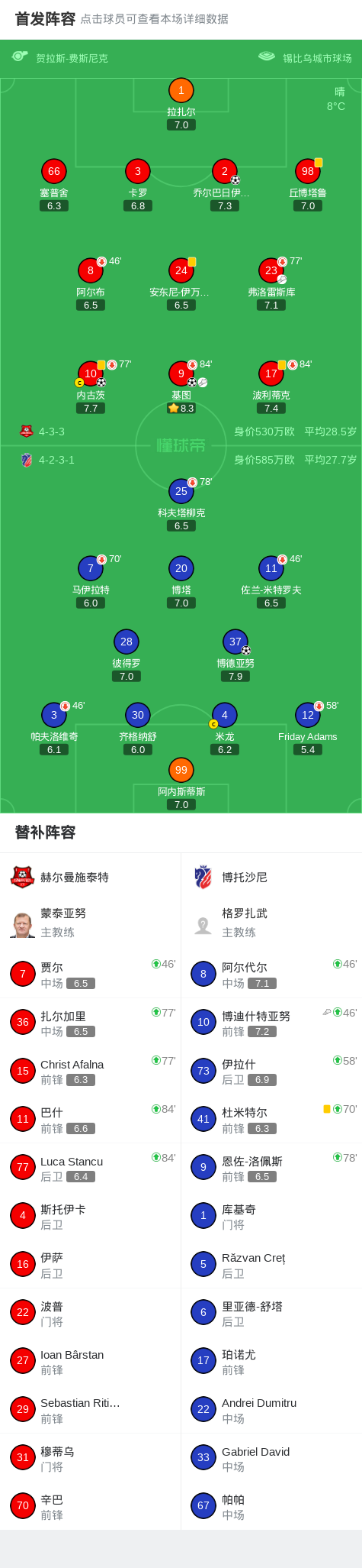 赫尔曼施泰特3-1博托沙尼,基图建功,内古茨破门