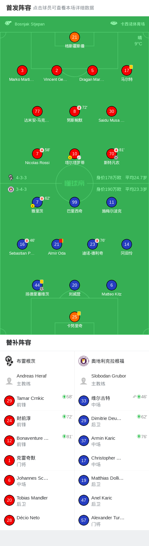 第68分钟,奥地利克拉根福球员维尔古特助攻扬德里塞维茨打入一球。