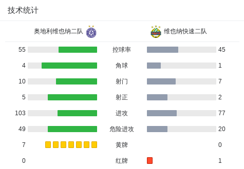 第9分钟,维也纳快速二队球队凯南-穆哈雷莫维奇吃到红牌。