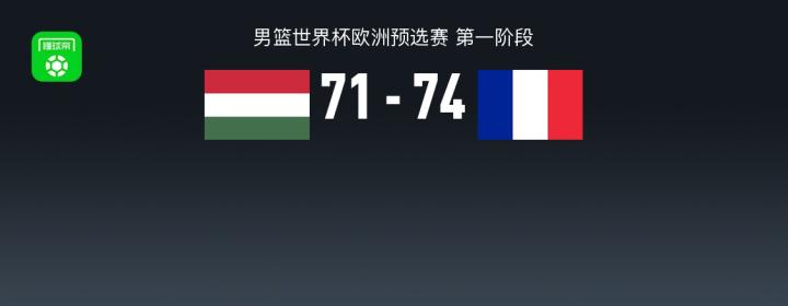 第四节匈牙利男篮桑博尔马龙卡拿下9分,法国男篮阿米尼-诺阿拿下4分,最终匈牙利男篮71-74不敌法国男篮
