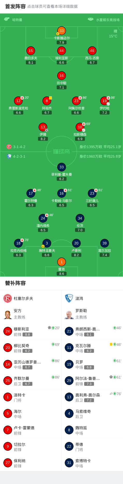 杜塞尔多夫2-1波鸿,穆斯利亚、伊滕建功