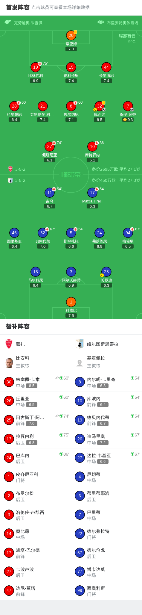 下半场补时第1分钟,蒙扎球员阿古斯丁-阿尔瓦雷斯助攻佩西纳打入一球。