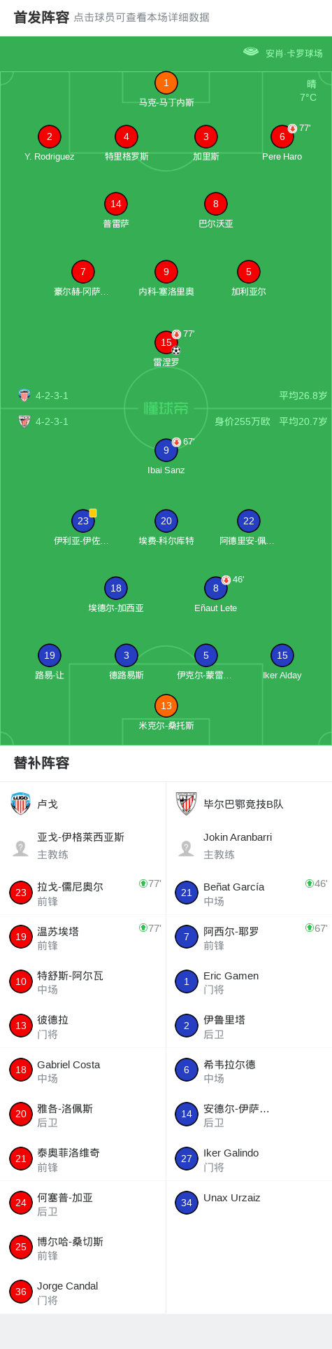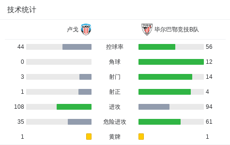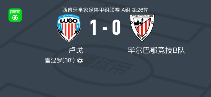 卢戈1-0毕尔巴鄂竞技B队,雷涅罗一锤定音战报bot @懂球帝02-28 04:01北京时间2月28日西班牙皇家足协甲组联赛 A组 第26轮,卢戈主场对阵毕尔巴鄂竞技B队。卢戈雷涅罗破门。最终比分卢戈 1-0 毕尔巴鄂竞技B队。点击查看本场比赛详细数据>>点击查看西协甲完整积分榜>>精彩瞬间第38分钟,卢戈球员雷涅罗打入一球。 球队阵容 技术统计 展开更多