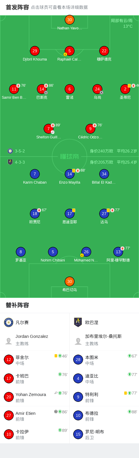维尔塞勒斯3-0大胜欧巴涅,Amir Etien破门,巴斯克建功