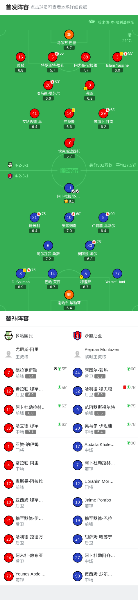第72分钟,多哈国民球队埃克斯波西托吃到红牌。