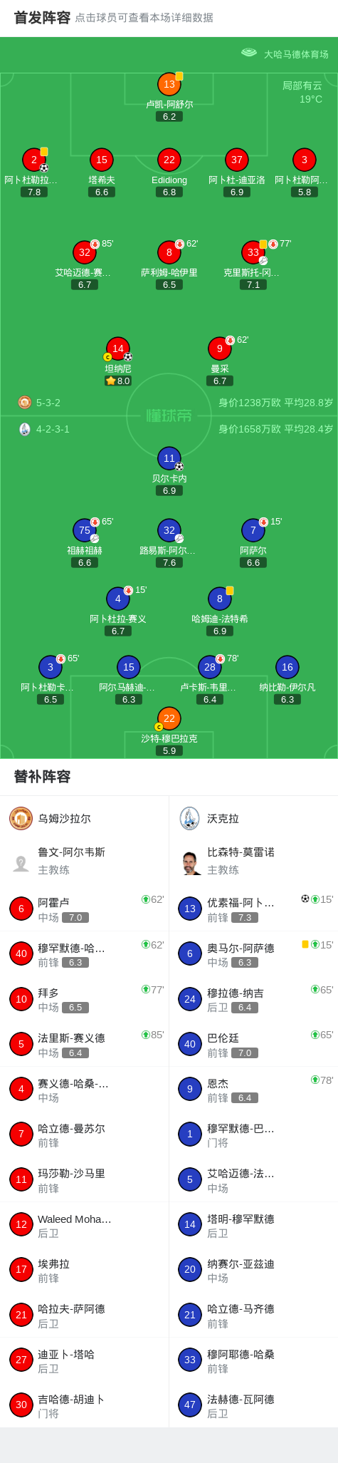 第37分钟,乌姆沙拉尔球员克里斯托-冈萨雷斯助攻阿卜杜勒拉赫曼-拉希迪打入一球。