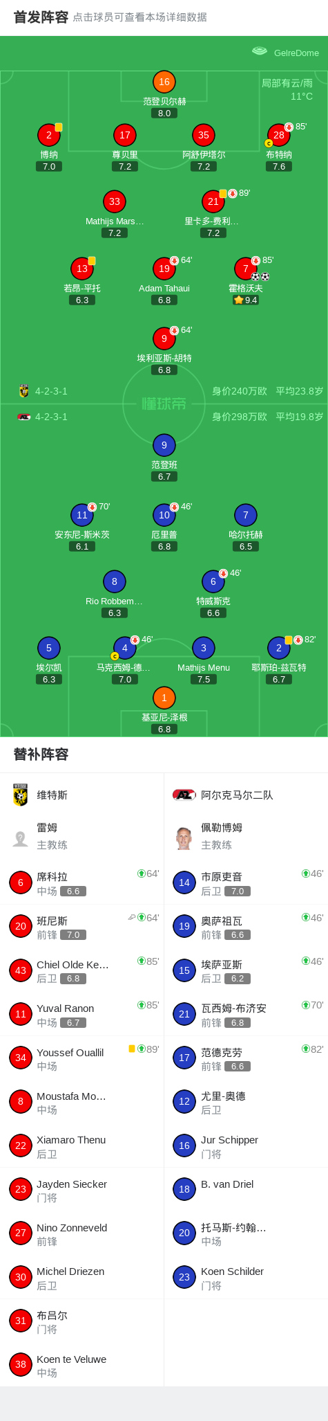 第71分钟,维特斯球员班尼斯助攻霍格沃夫打入一球。