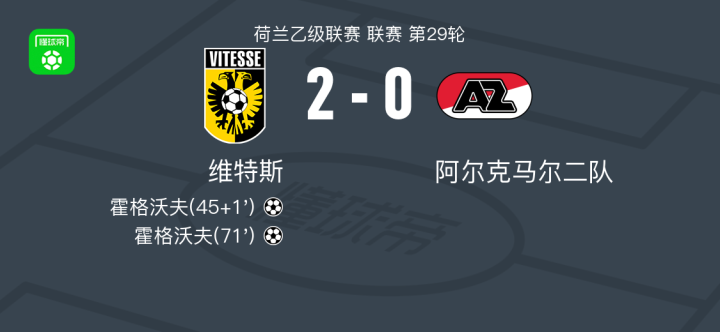 维特斯2-0阿尔克马尔二队,霍格沃夫包办2球