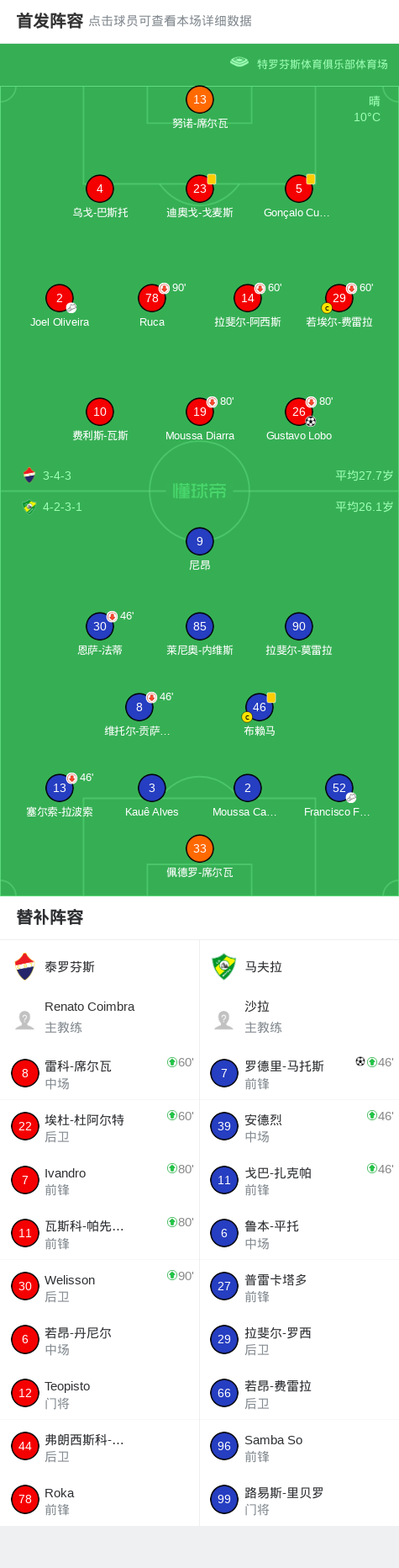 第77分钟,马夫拉球员Francisco Ferreira助攻罗德里-马托斯打入一球。