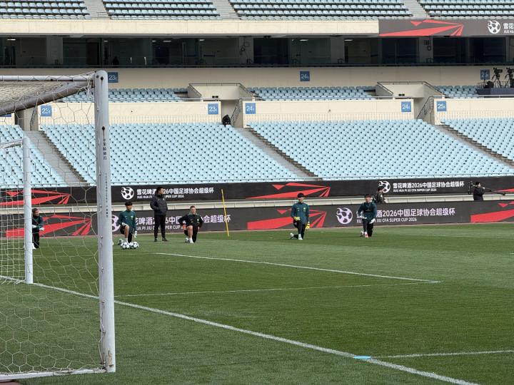 懂球帝记者南京现场报道,2月28日,中国超级杯的赛前新闻发布会及赛前官方训练在南京奥体中心体育场进行。