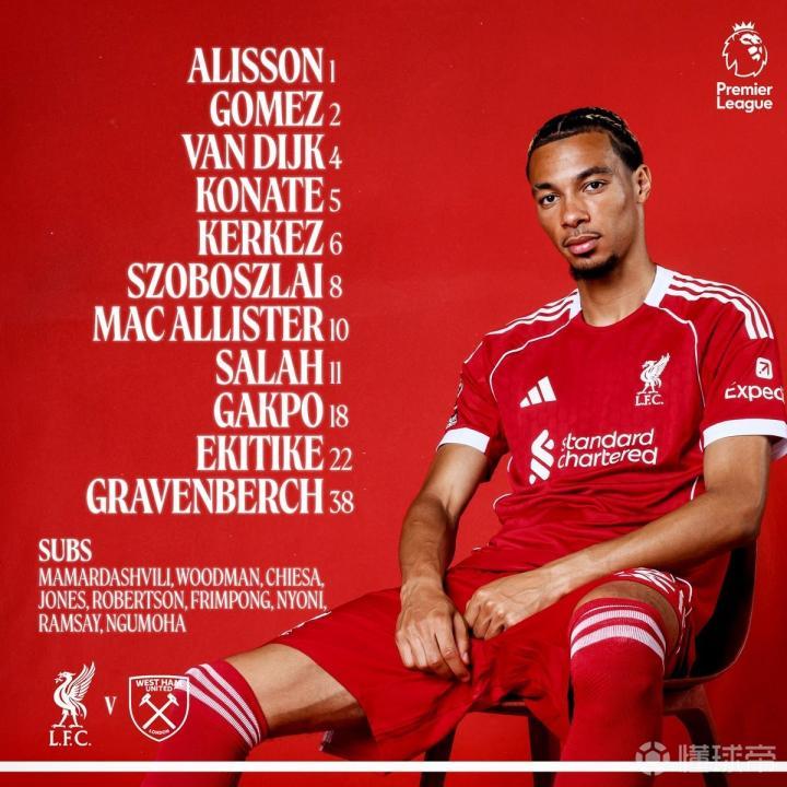 利物浦vs西汉姆:萨拉赫、埃基蒂克首发,麦卡、加克波出战