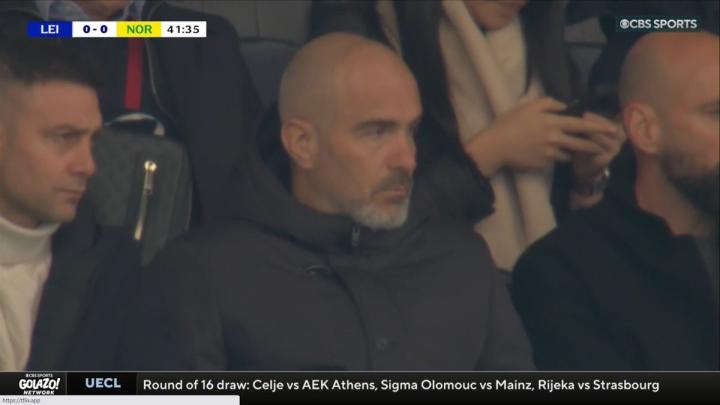 英冠第35轮,莱斯特城坐镇主场迎战诺维奇。前切尔西、莱斯特城主帅马雷斯卡被转播镜头捕捉到现身莱斯特城对阵诺维奇的比赛现场。