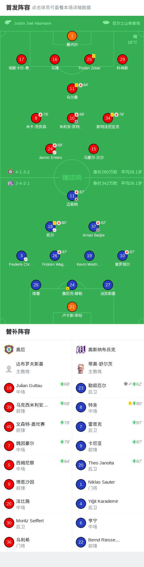 第17分钟,奥斯纳布吕克球员Frederik Christensen助攻Ismail Badjie打入一球。