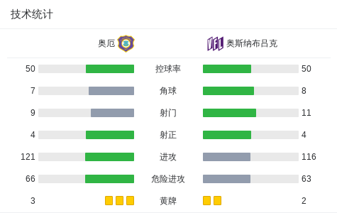 第76分钟,奥斯纳布吕克球员勒叙厄尔助攻迈斯纳打入一球。