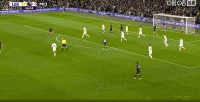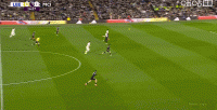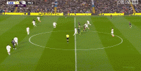 第45+2分钟,艾特-努里传中,塞门约门前抢点破门,曼城1-0利兹联