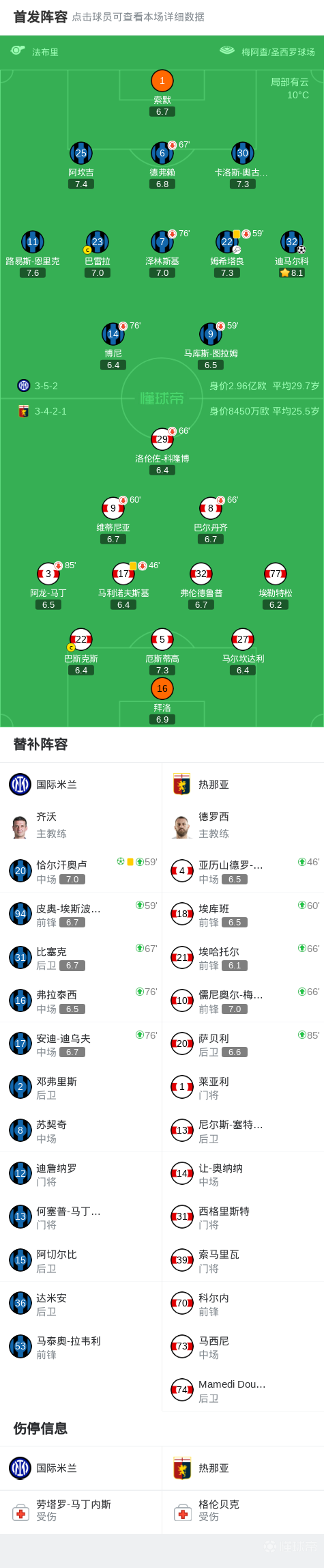 北京时间3月1日意大利足球顶级联赛第27轮,国际米兰主场对阵热那亚。上半场,姆希塔良助攻,迪马尔科凌空破门。下半场,路易斯-恩里克造点,恰尔汗奥卢主罚命中。全场比赛结束,国米2-0战胜热那亚。