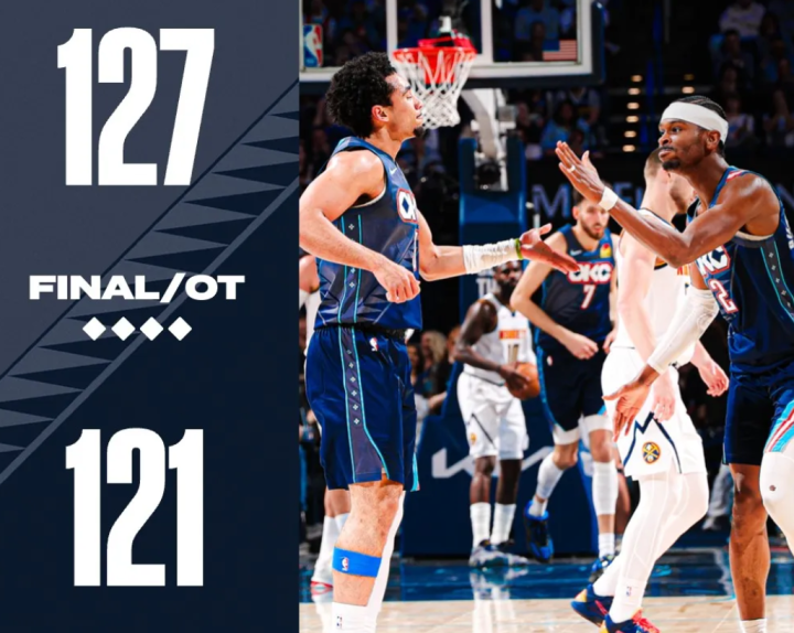 德译洋洋NBA常规赛继续进行,丹佛掘金队昨天对阵俄克拉荷马城雷霆队,他们通过一场加时大战,以121比127输给了雷霆队。
