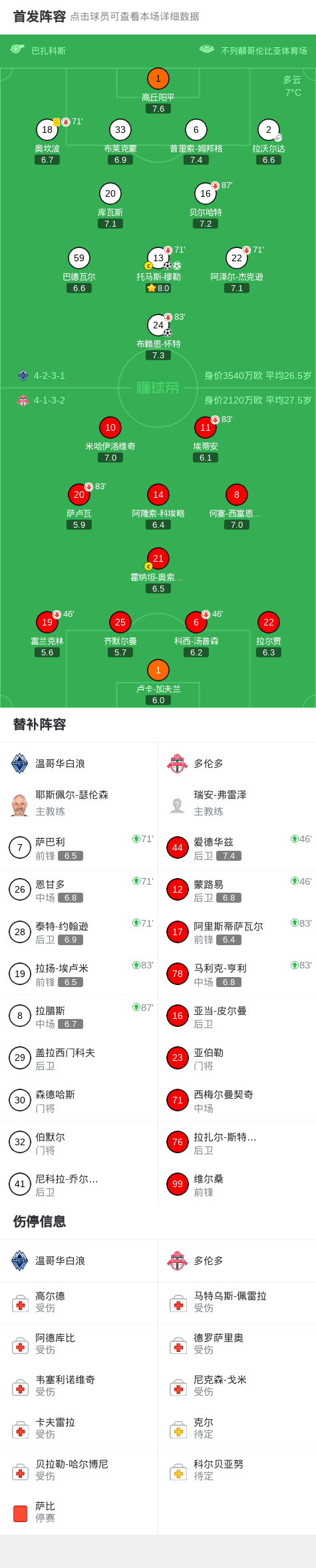 北京时间3月1日美国职业大联盟 常规赛,温哥华白浪主场对阵多伦多。温哥华白浪托马斯-穆勒梅开二度,布赖恩-怀特破门。最终比分温哥华白浪 3-0 多伦多。